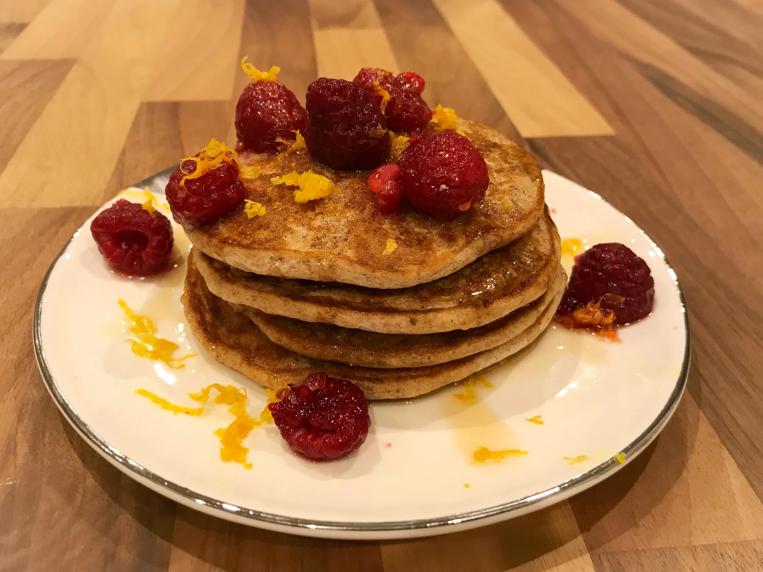 I'm usually more of a savory fan; however, this morning I was really craving something sweet. And since I woke up this morning with a little time to spare before leaving for work, I decided to whip up some fluffy, American pancakes. They took all of 10 minutes including decorating my plate for a photo! WIN!
